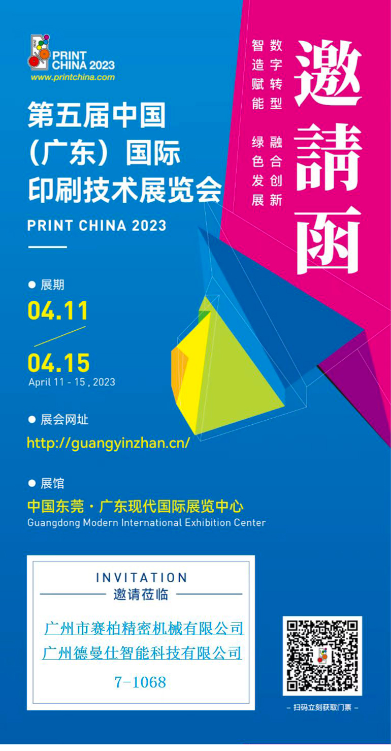 第五屆廣印展將在2023年4月11-15號,東莞厚街舉辦,賽柏邀請您親臨7號館1068